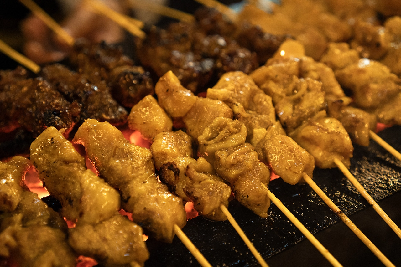 Kami tawarkan satey ayam, daging, kambing dan perut, dibakar atas arang dengan kuah kacang tradisional homemade yang pekat dan lazat.